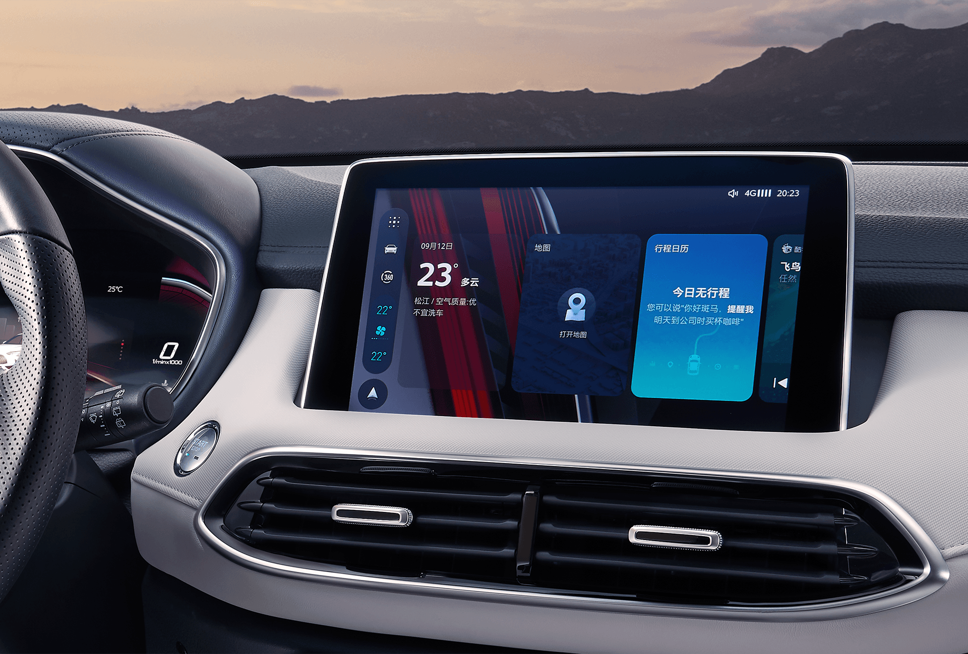 Cụm taplo của MG HS được định hình theo dạng chữ T, ôm trọn cụm màn hình giải trí và cần số. Khu vực mặt trên sử dụng da tương tự ghế ngồi cho cảm giác cao cấp, bên dưới là da với hoạ tiết carbon cùng đường chỉ khâu màu đỏ đẹp mắt.